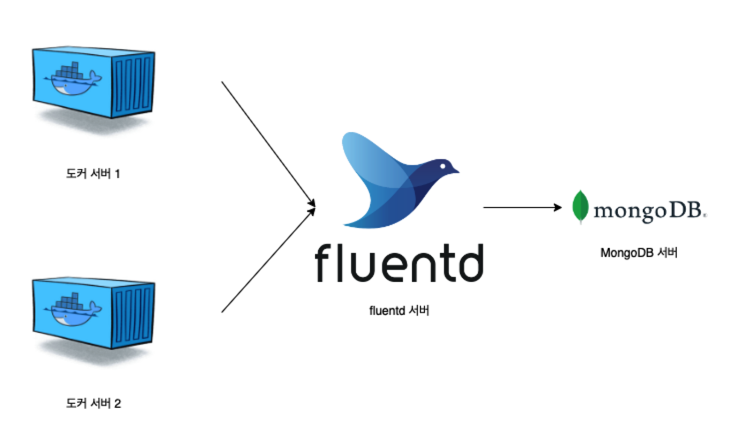위 그림대로라면 도커 서버, fluentd 서버, 몽고 DB 서버로 구성되므로 서버는 최소 3대가 필요하지만 사용자의 환경에 맞게 변경해서 사용하면 됩니다. 예를 들면, 각 서버 호스트에 fluentd를 설치할 수도 있고, 테스트를 위해 몽고DB 서버, fluentd 서버, 도커 서버가 하나의 물리 머신에서 동작하도록 구현할 수 있습니다.
