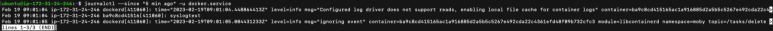 현재 날짜 기준으로 최신버전인 우분투 22.04 기준으로도 journalctl -u docker.service 명령어로 확인할 수 있습니다. 아래는 우분투에서 syslog가 기록된 예시입니다.
