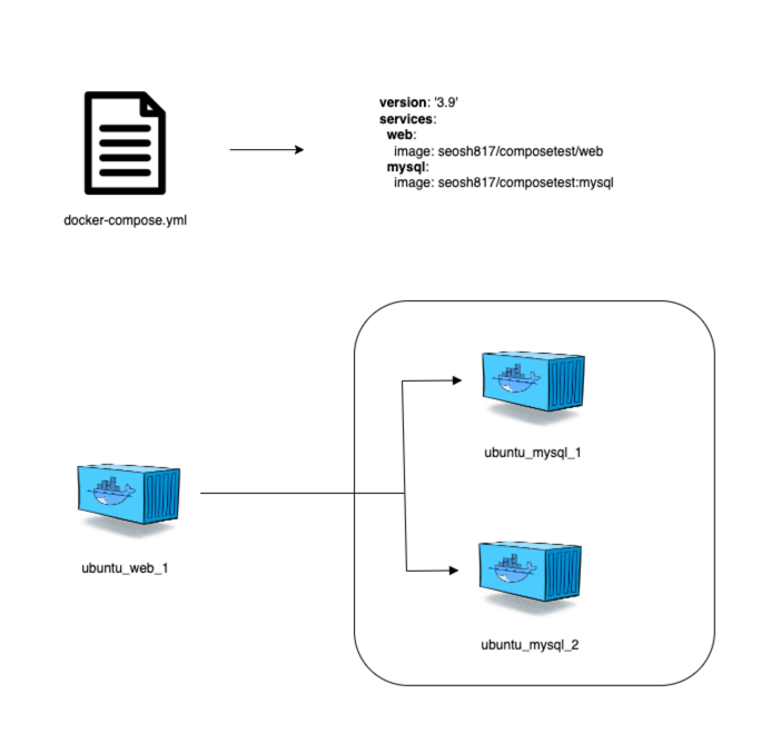 - build -> build 항목에 정의된 도커파일에서 이미지를 빌드해 서비스의 컨테이너를 생성하도록 설정합니다. 다음 예제는 ./composetest 디렉토리에 저장된 도커파일로 이미지를 빌드해 컨테이너를 생성합니다. 새롭게 빌드될 이미지의 이름은 image 항목에 정의된 이름인 seosh817/composetest:web이 됩니다.