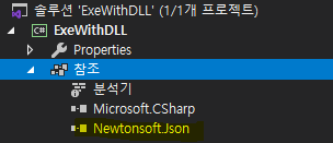 2. 설치를 완료하면 참조그룹 하위에 Newtonsoft.Json이 추가됩니다.