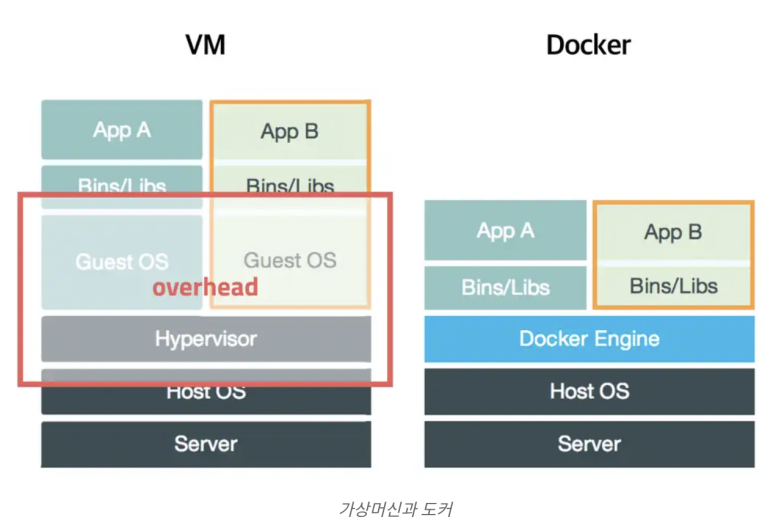 - 컨테이너는 호스트 운영체제의 커널을 공유하므로 가볍고 효율적으로 자원을 활용